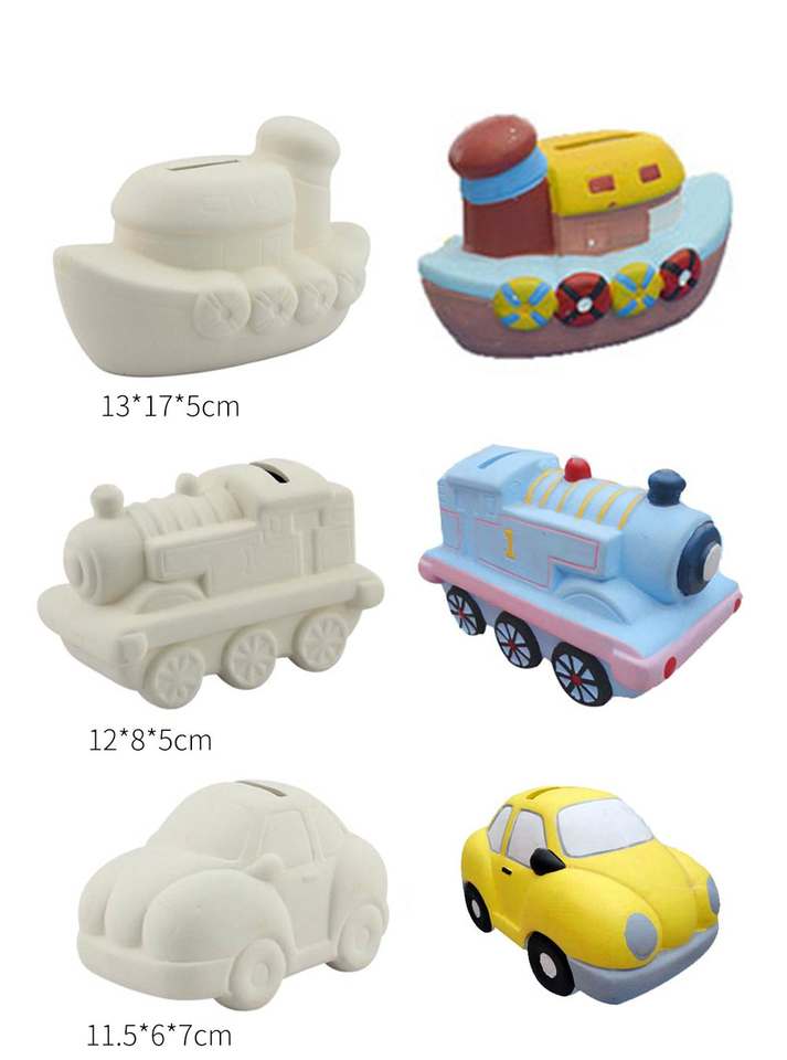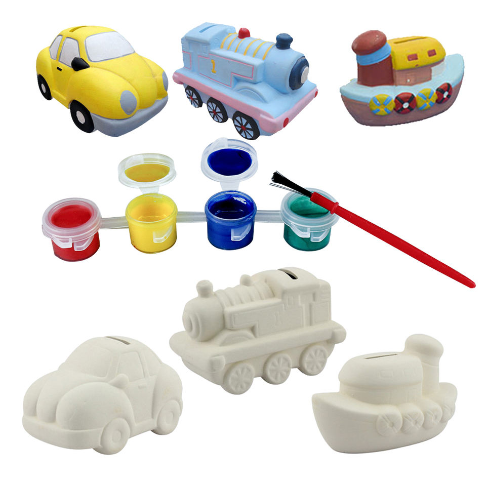 Piccola auto treno barca divertente pittura giocattolo fai da te moneta banca per i bambini