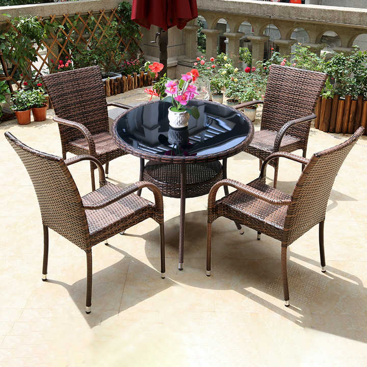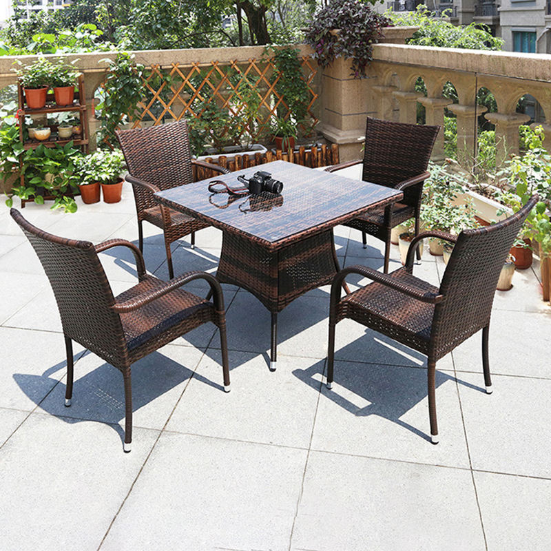 Piccolo tavolino e 4 sedie struttura in metallo plastica Rattan Set di mobili da giardino per esterni per terrazza balcone prezzo basso