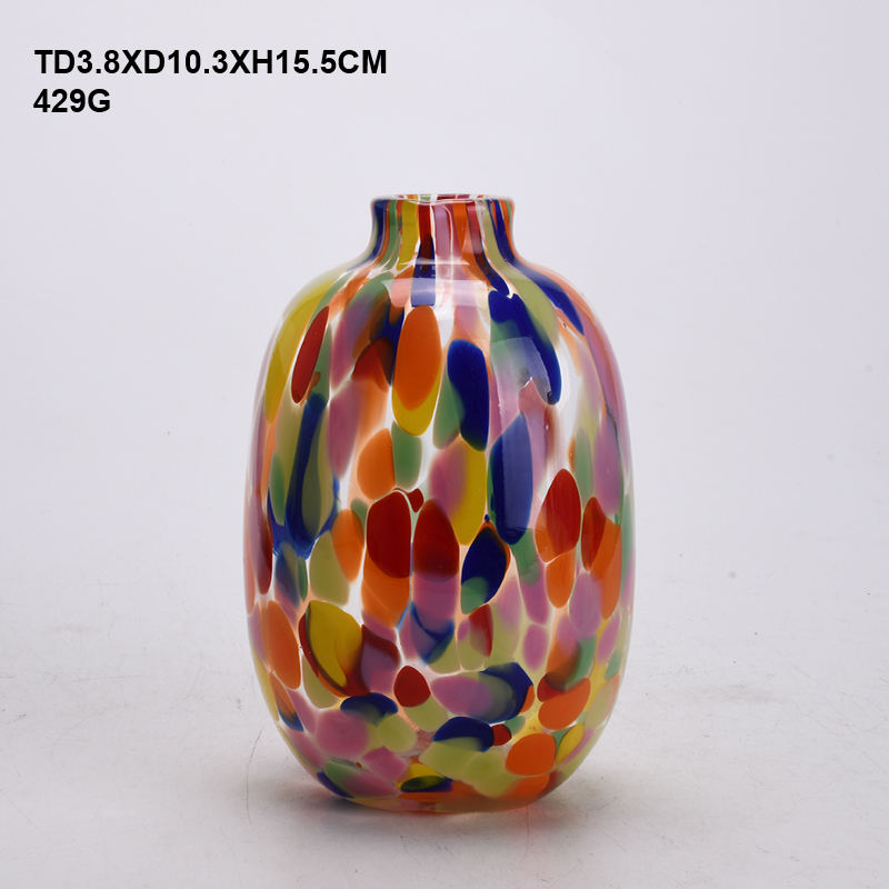 Nome del prodotto:Piccolo Vaso in Vetro Colorato Effetto Coriandoli Soffiato a Mano
