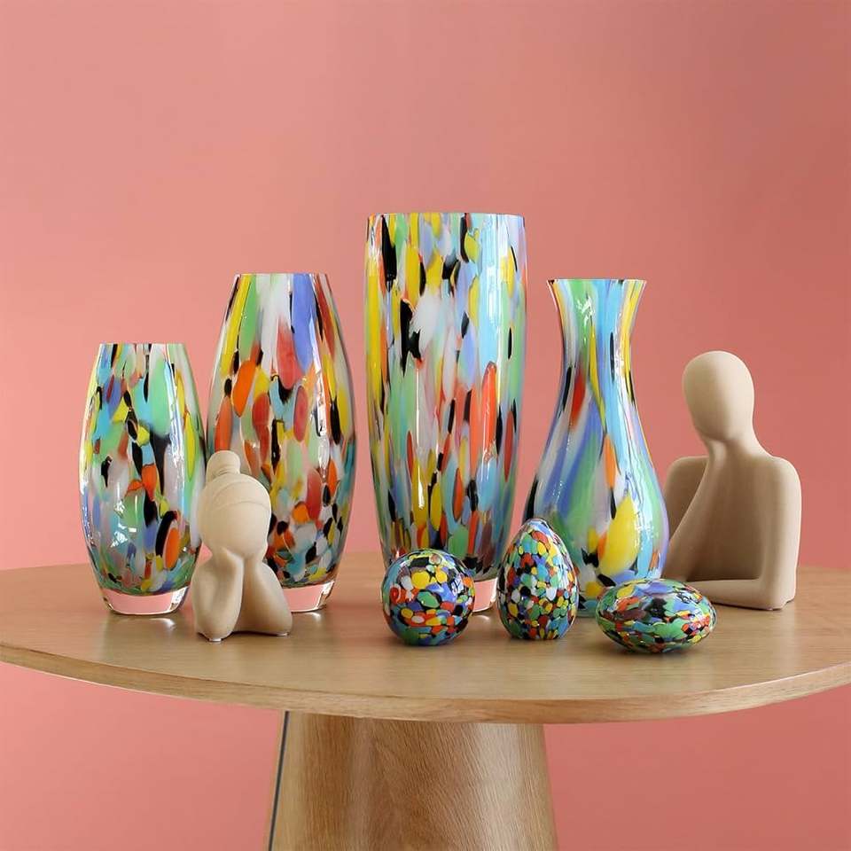 Piccolo Vaso in Vetro Colorato con Effetto Coriandoli, Vetro Artistico Soffiato a Mano Stile Murano per Fiori, Decorazione d'Interni e Centrotavola