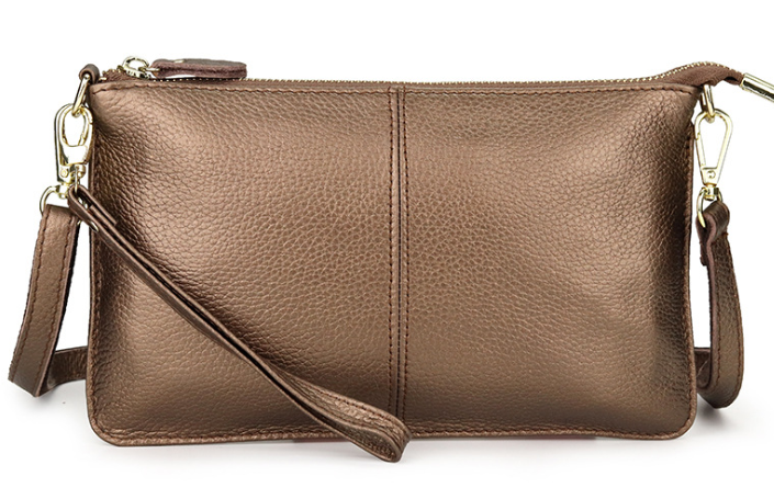 Piccola Borsa a Tracolla da Donna in Vera Pelle Morbida e Resistente, Colore Argento Metallizzato