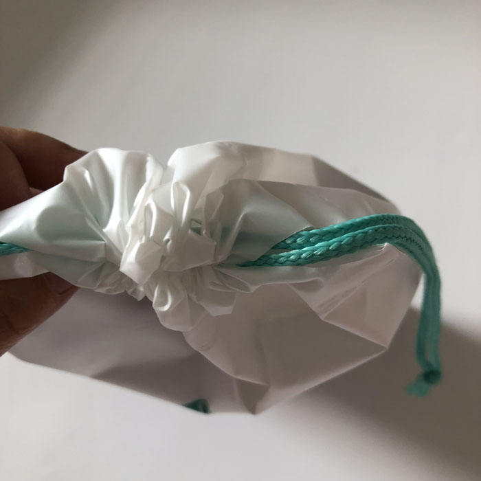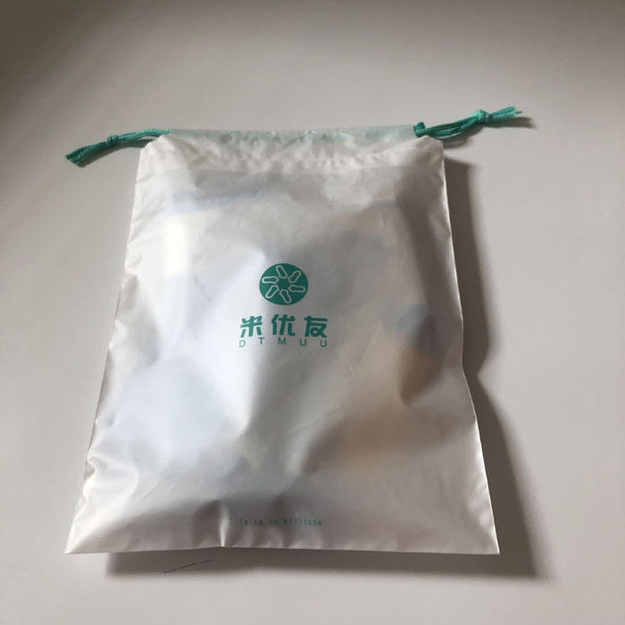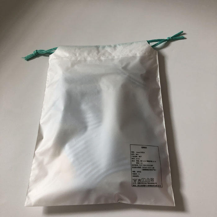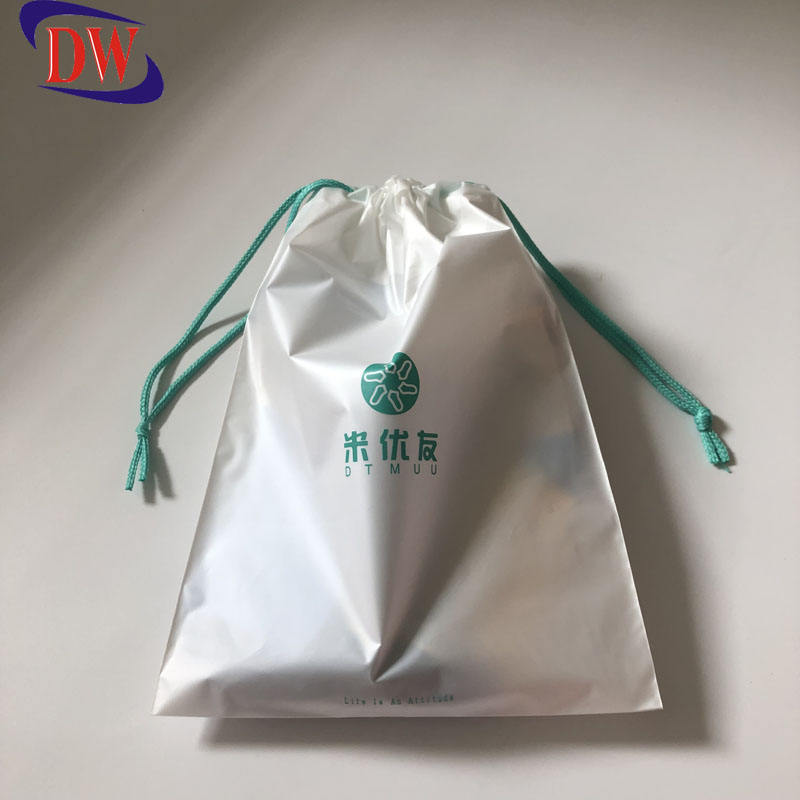 Piccolo logo personalizzato stampato ldpe bianco doppio strato con coulisse lenzuolo imballaggio shopping carry plastic poly bag