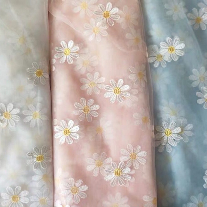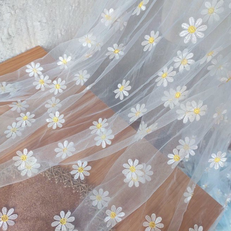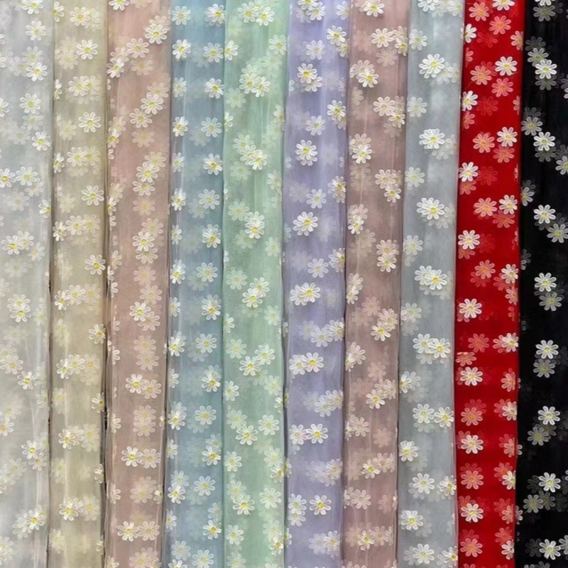 Piccola margherita 3D ricamata in maglia tessuto 130cm di larghezza colorato fiore Tulle per sposa donna abito da sposa per la moda delle ragazze