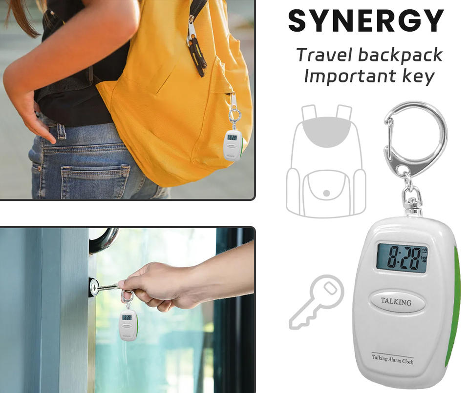 Orologio Digitale Parlante Portachiavi con Voce Personalizzata per Ipovedenti, Sveglia Digitale per Bambini e Anziani