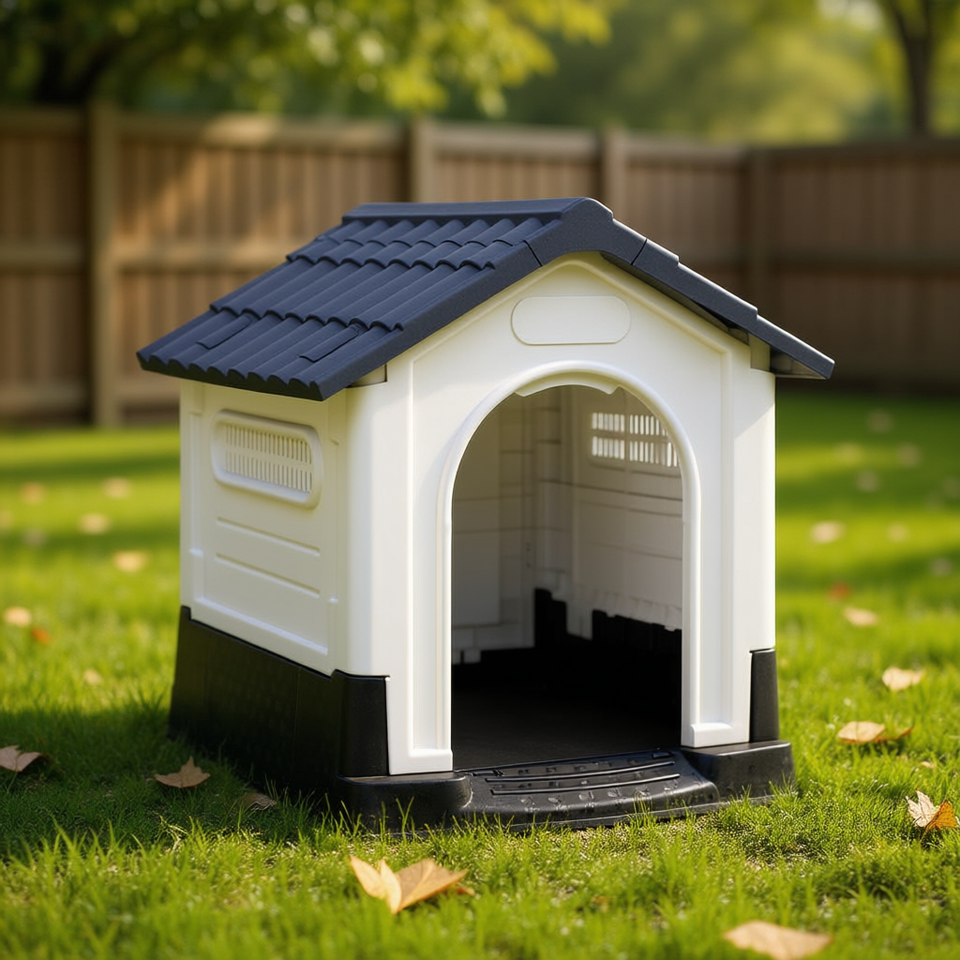 Cuccia per cani di piccola taglia in polipropilene grigio, bianco e nero, arredo per animali domestici da esterno, resistente per tutte le stagioni, stile classico rettangolare
