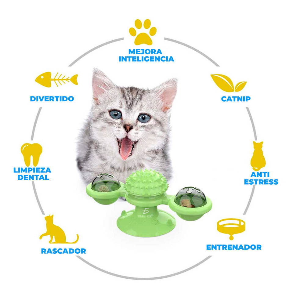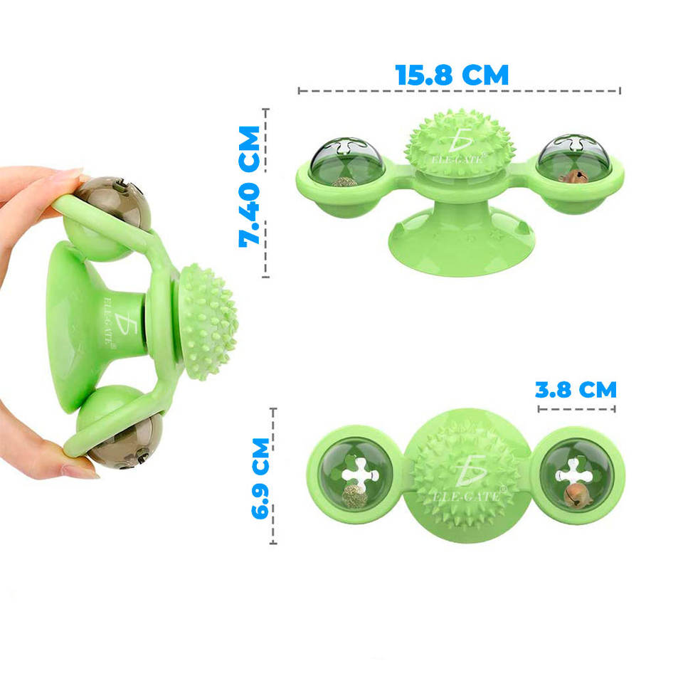 Giocattoli Ecologici per Gatti, Stile Cartone Animato, Torre Rotante con Palla di Piume in PC, Funzione Pulizia Denti per Animali Domestici