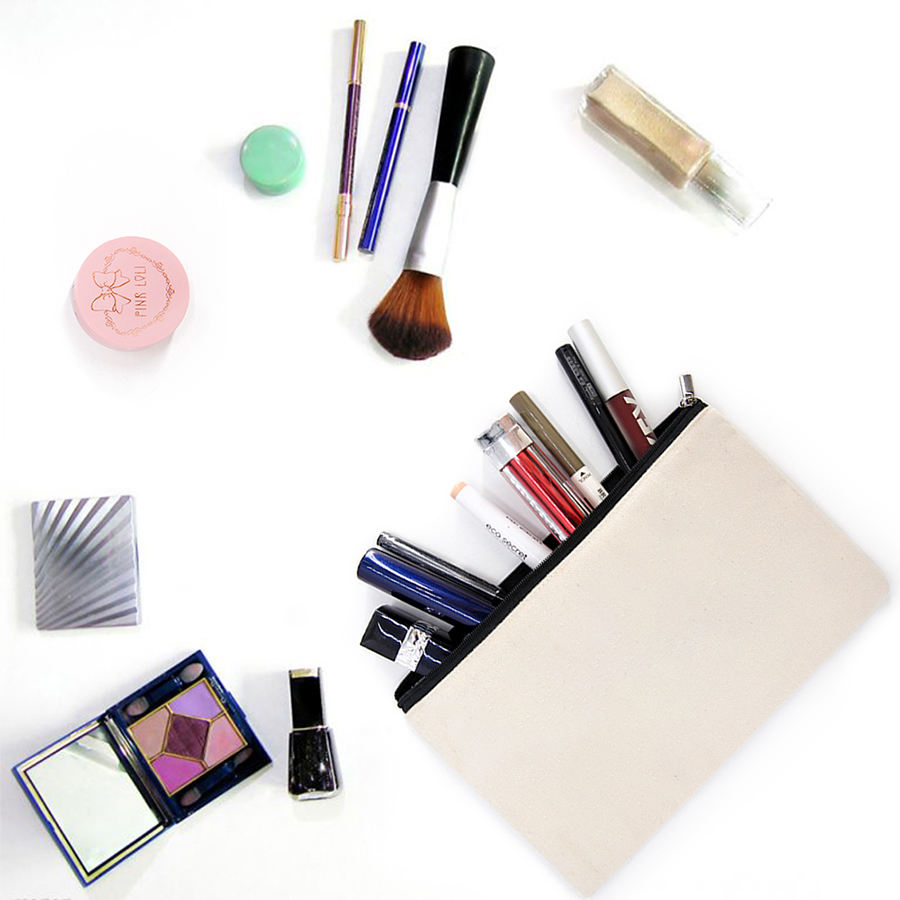 Piccola Pochette Ecologica Personalizzata in Tela di Cotone Calicò con Cerniera e Logo | Borsa da Viaggio per Trucchi e Cosmetici Bianca