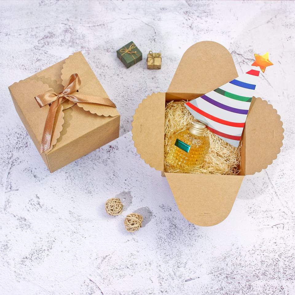 Piccole Scatole Regalo Vuote in Carta Kraft Marrone Ecologica con Laminazione Opaca e Nastro per Confezioni Regalo