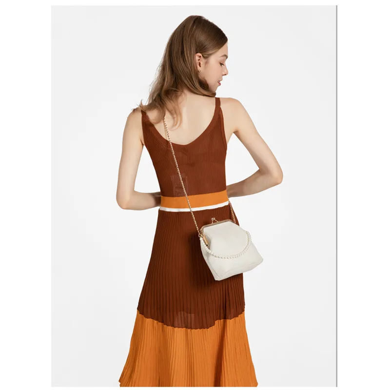 Small Fashionable Mini Messenger Bag with Pearl Handle and Kiss Lock Chain Strap Ladies Crossbody Purses and Handbag