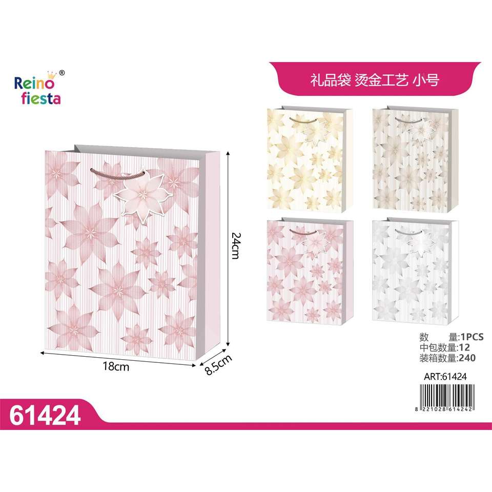 Piccola borsa regalo con disegno floreale e timbratura in oro 18x24x85cm per feste ed eventi bomboniere