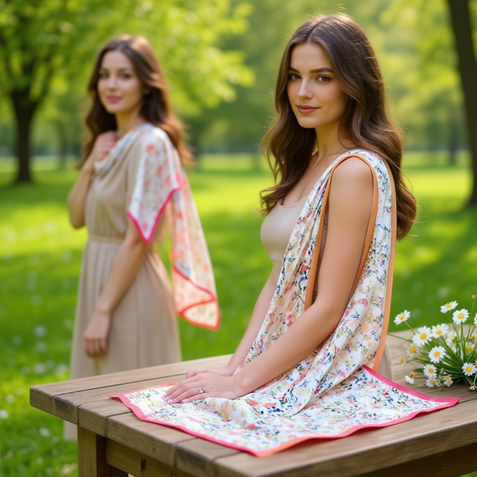 Foulard Quadrato Floreale Piccolo 70x70cm in Seta Leggera Stampata, Accessorio Moda Donna
