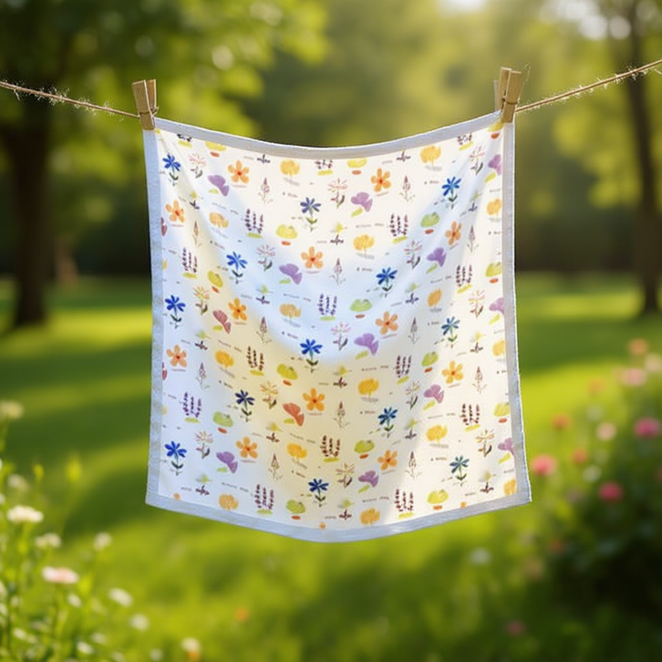 Fazzoletto quadrato con piccoli fiori 70x70 cm in cotone stampato per donne e ragazze