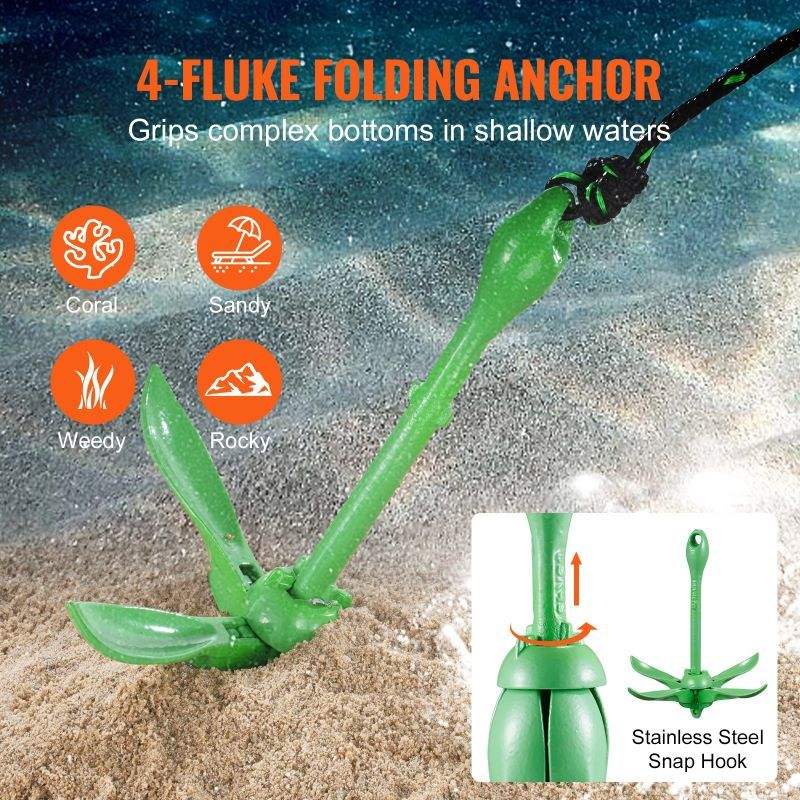 Piccola Ancora Pieghevole con Moschettone per Kayak, Canoe e Altre Piccole Imbarcazioni