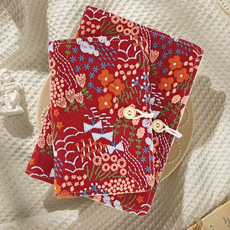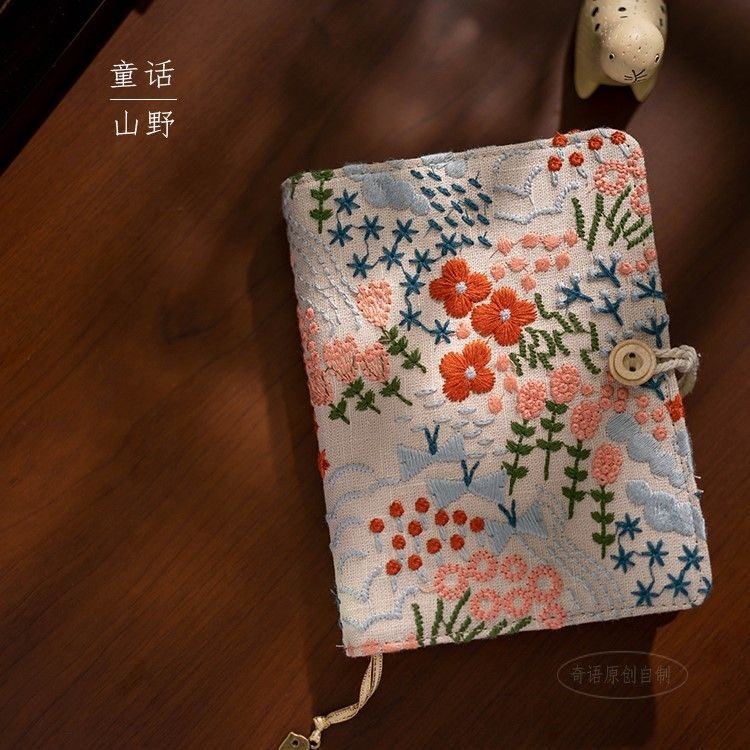 Small Fresh Fabric Noodles Cotton and Linen Embroidery A5A6 Loose-leaf Line-mounted Hand-held Ledger Book Literature and Art