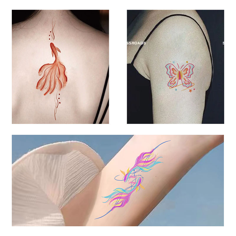 Piccole linee di schizzo fresco fiori e farfalla tatuaggio adesivi disegno impermeabile