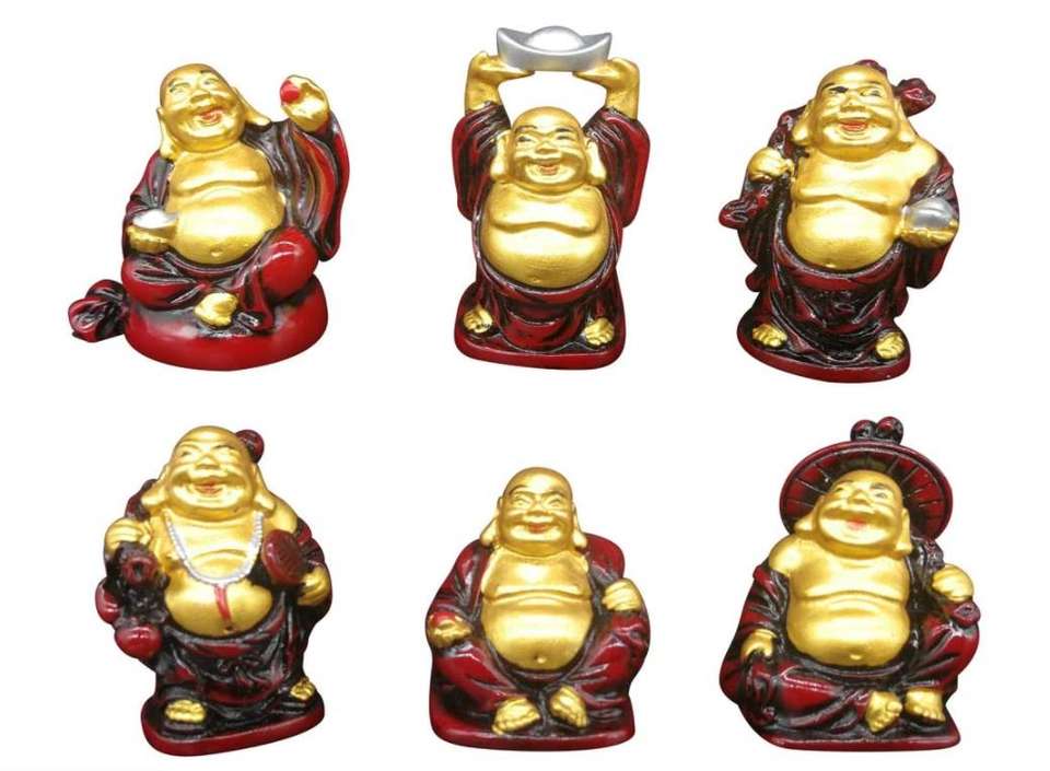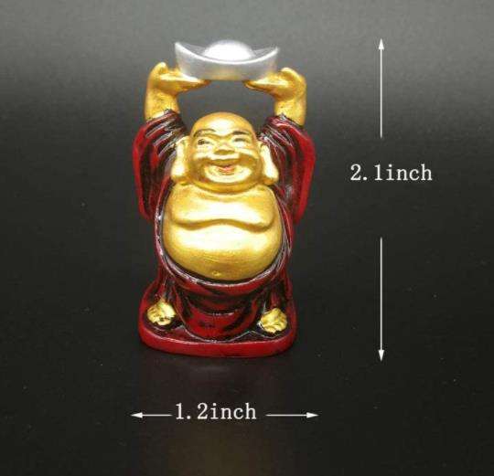 Statuette di Buddha Ridenti Piccole da 2 Pollici, Set di 6 in Resina con Lingotti Rossi, Dorati e Argentati, Decorazioni Cinesi Portafortuna per Regali di Compleanno