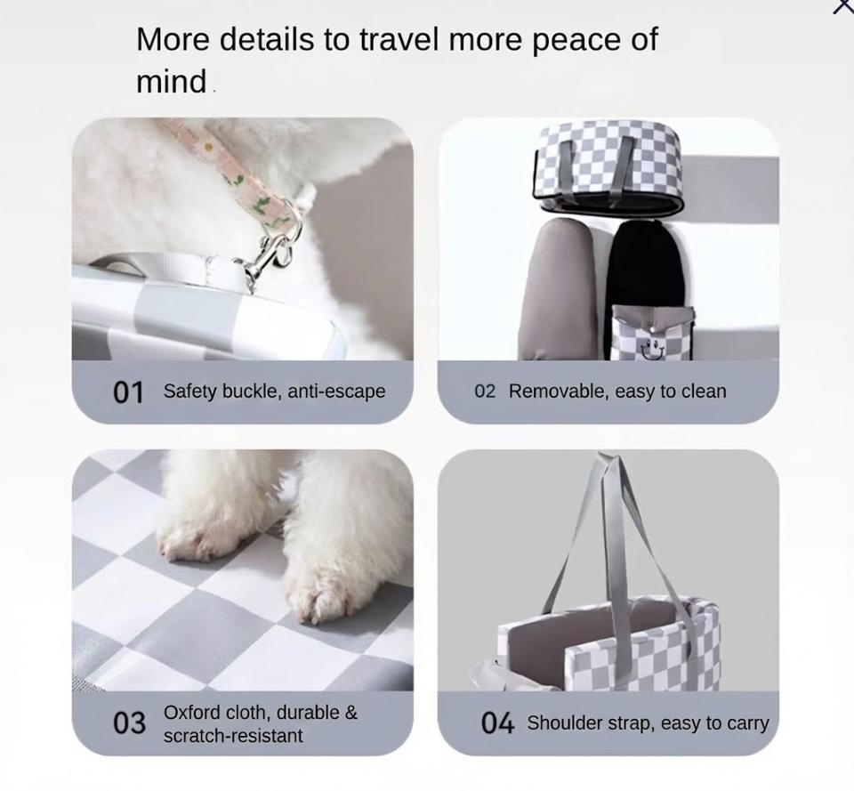 Small Medium Pet Dog Cat Booster Car Seat Waterproof Portable Folding Travel Carrier with Oxford Material and Printed Pattern