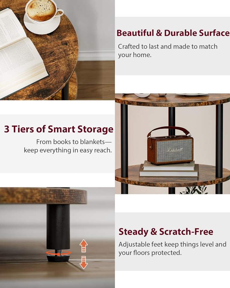 Small Metal Coffee Table 3-Tier Design Narrow Side Industrial Vintage Bedroom Living Room