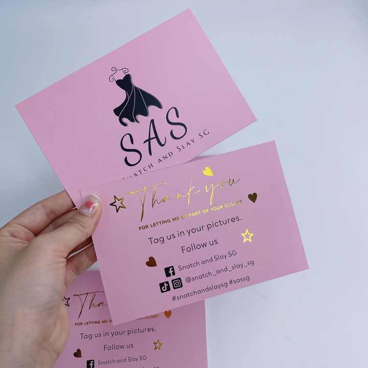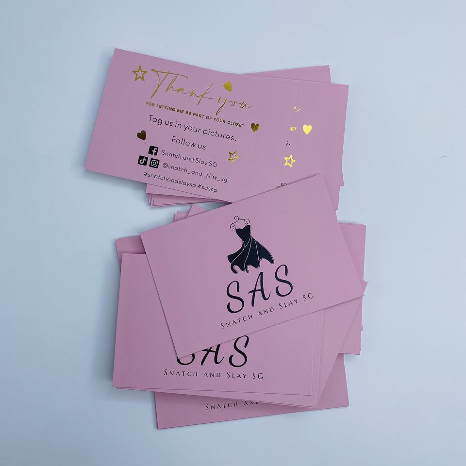 Piccolo ordine biglietto da visita stampa personalizzata inserti di carta grazie carte per sostenere la mia attività con foglio d'oro timbratura