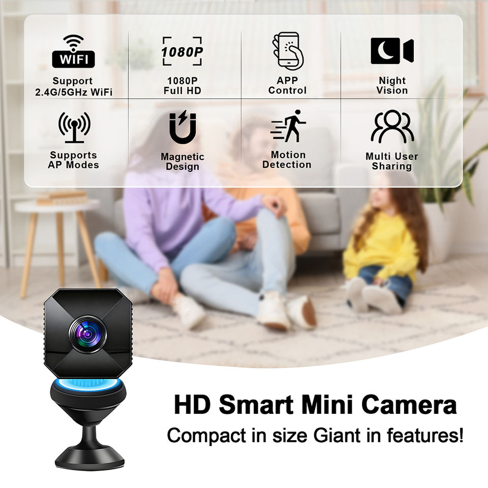 Mini Telecamera di Sicurezza WiFi Portatile HD 4K con Rilevamento Movimento, Archiviazione Cloud/SD, Visione Notturna e Grandangolo