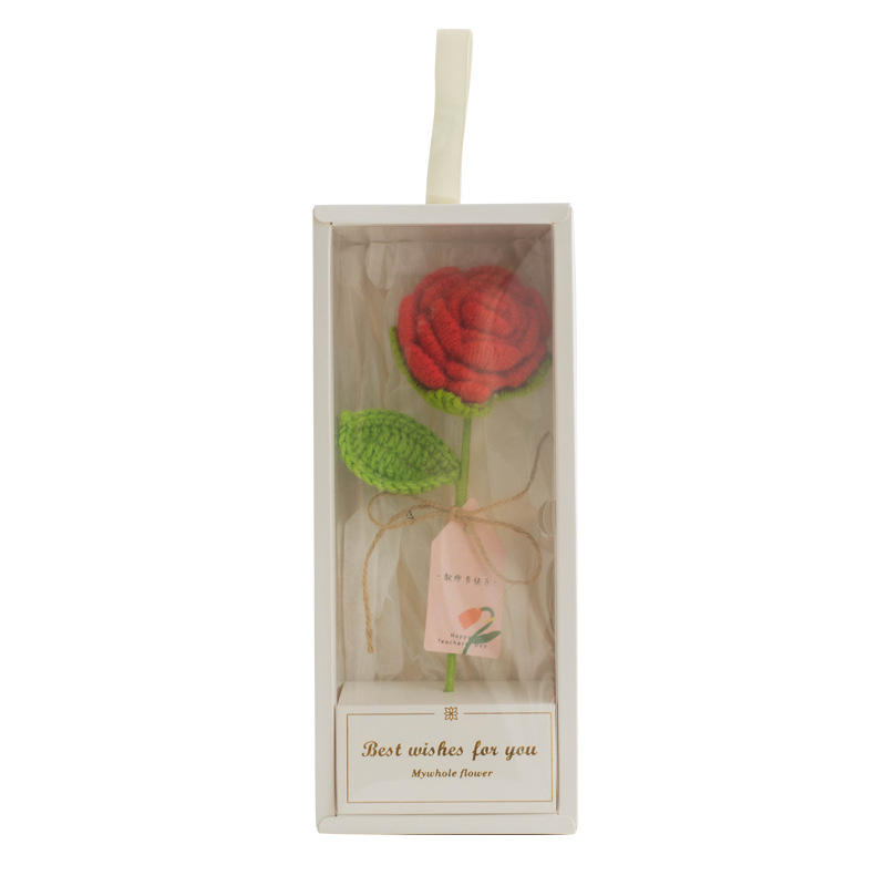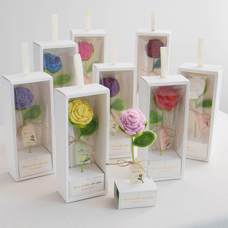Scatola Rettangolare Piccola con Bouquet di Rose Artificiali all'Uncinetto, Regalo Creativo per le Feste, Auguri Speciali per la Festa degli Insegnanti