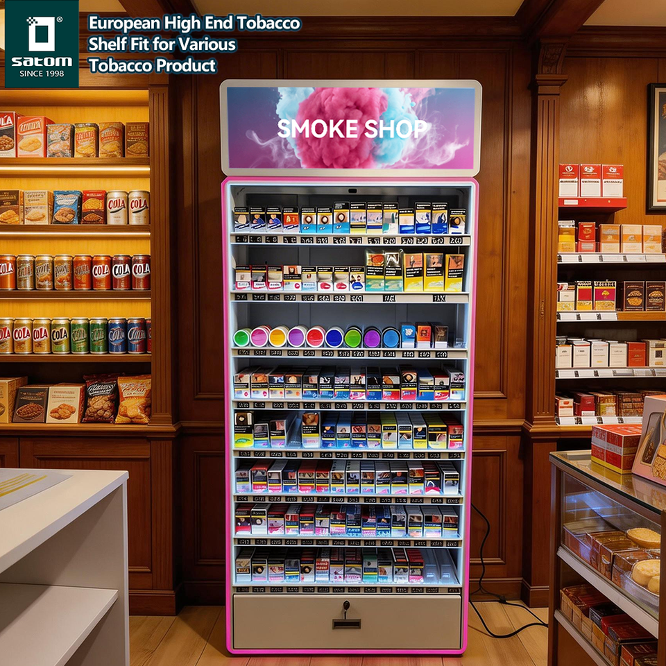 Tipo:Pubblicità con scaffale per tabacco illuminato dai colori vivaci