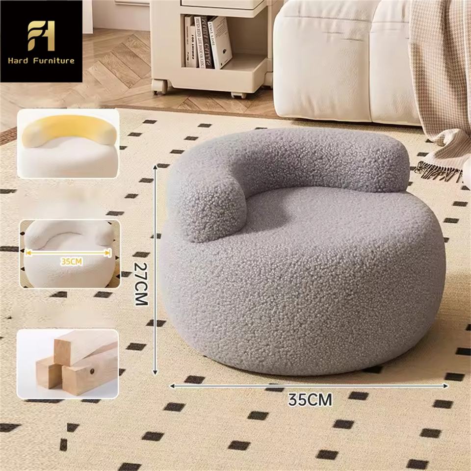 Poltrona Rotonda Piccola in Pelle Bianca con Lana d'Agnello Stile Crema per Soggiorno, Camera da Letto o Arredamento Alberghiero