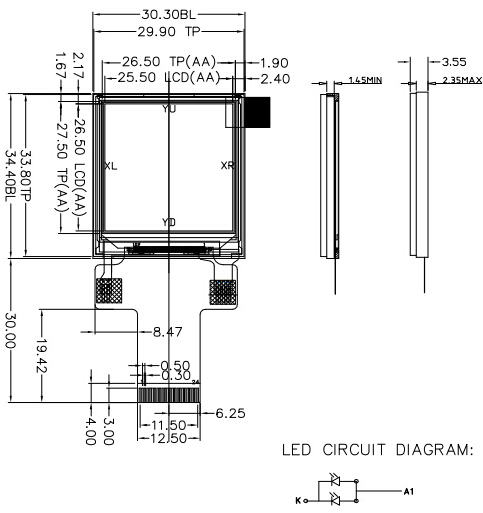dimensione del contorno:34,4(H)*30,3(W)*3,4(T)(Incluso TP ed Escluso FPC)