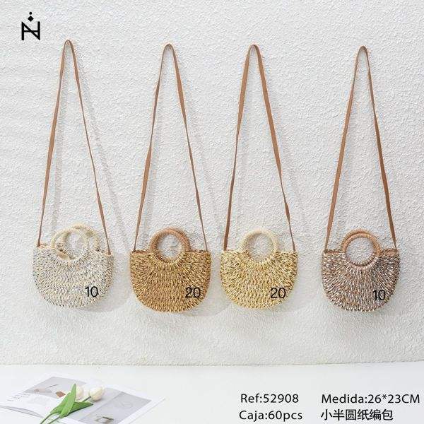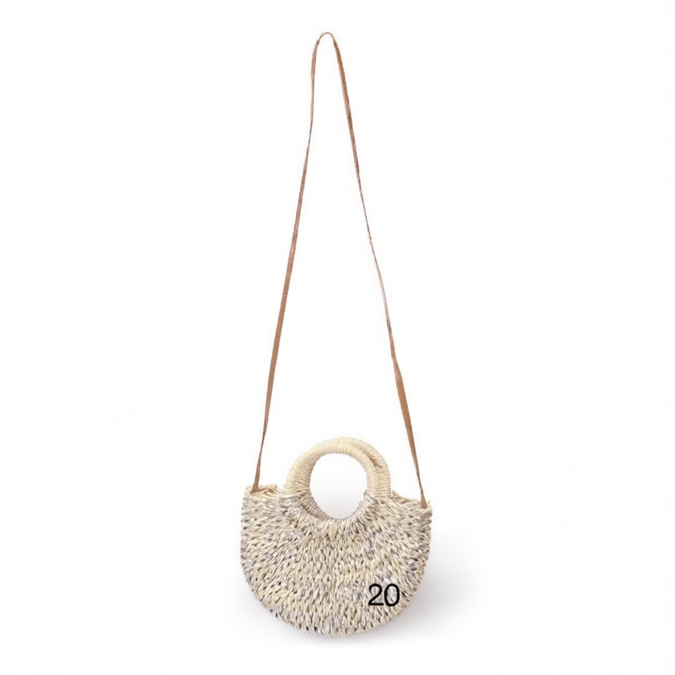 Piccola borsa a tracolla semicircolare in carta intrecciata 26x23 cm per donna, stile estivo da spiaggia