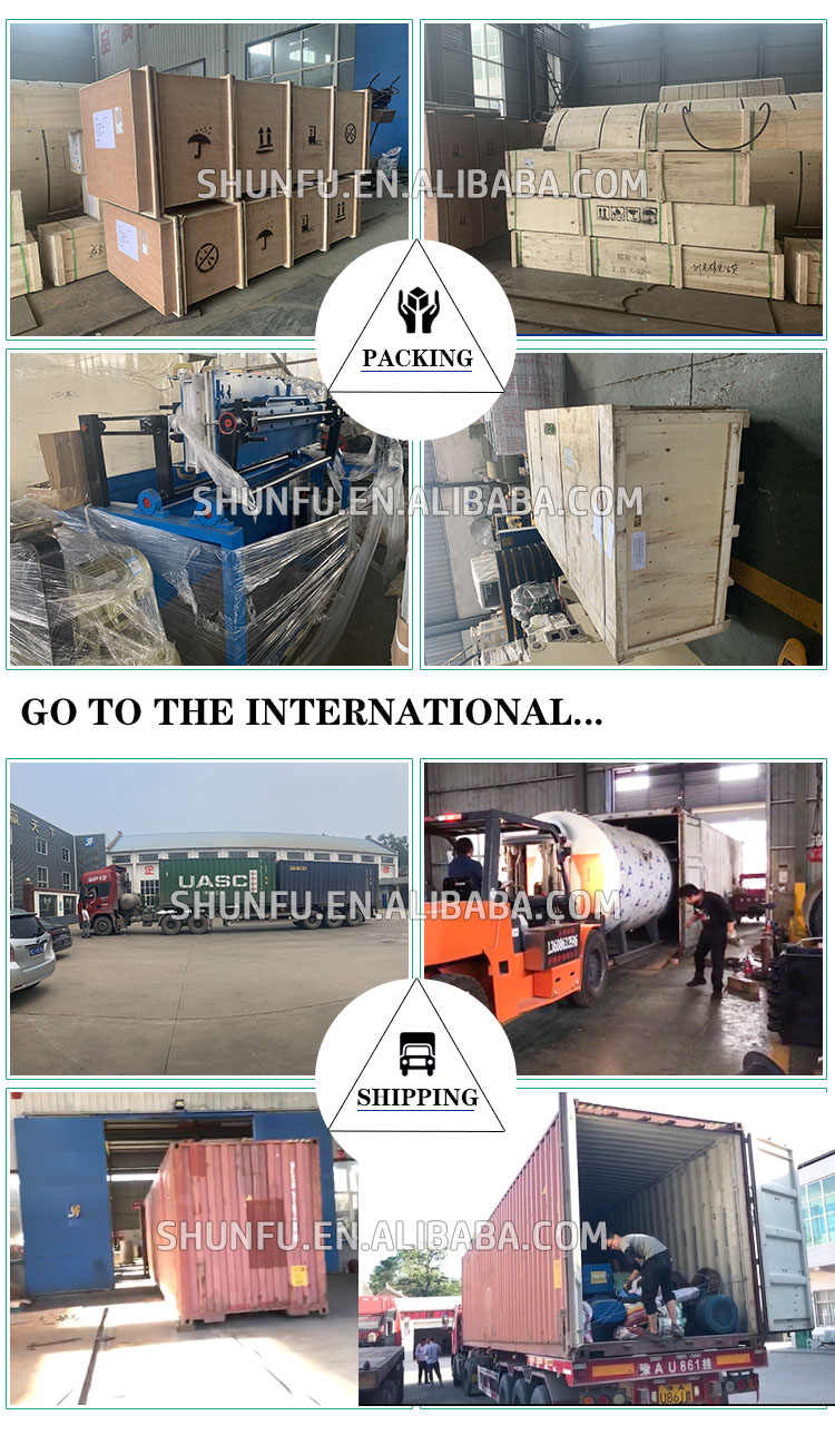 Nacked packing the machine (plastic film /hemp rope/wood chips/wooden carton packing main parts of machine, and steel wire to fix the machine in container)