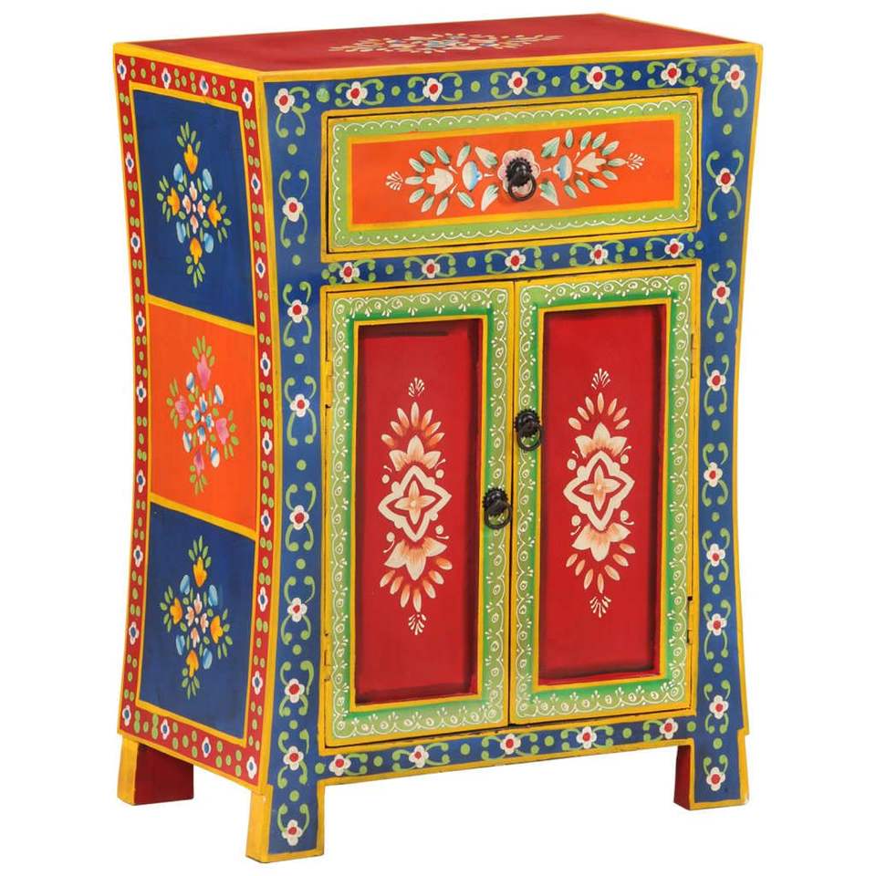 Credenza Piccola in Legno Massello di Mango Multicolore, Pezzo di Arredamento Unico e Elegante