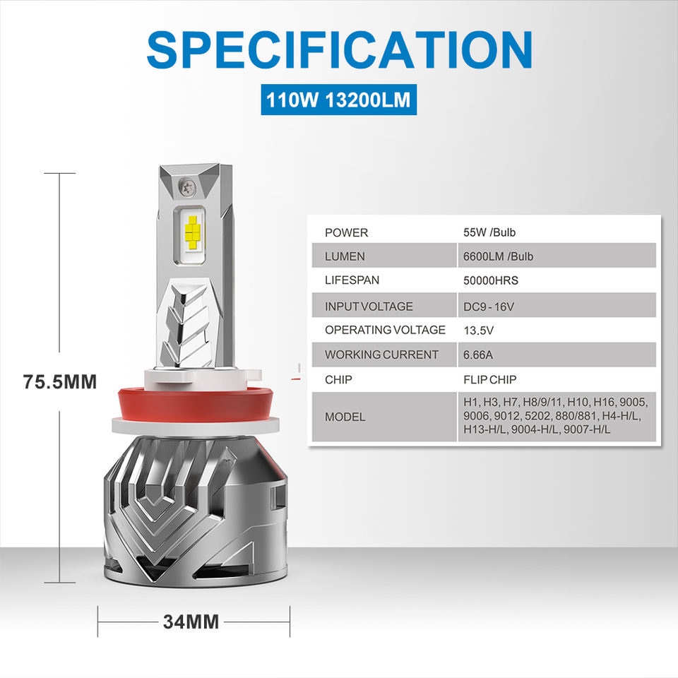 Lumen:6600LM/lampadina, 13200lumen/coppia