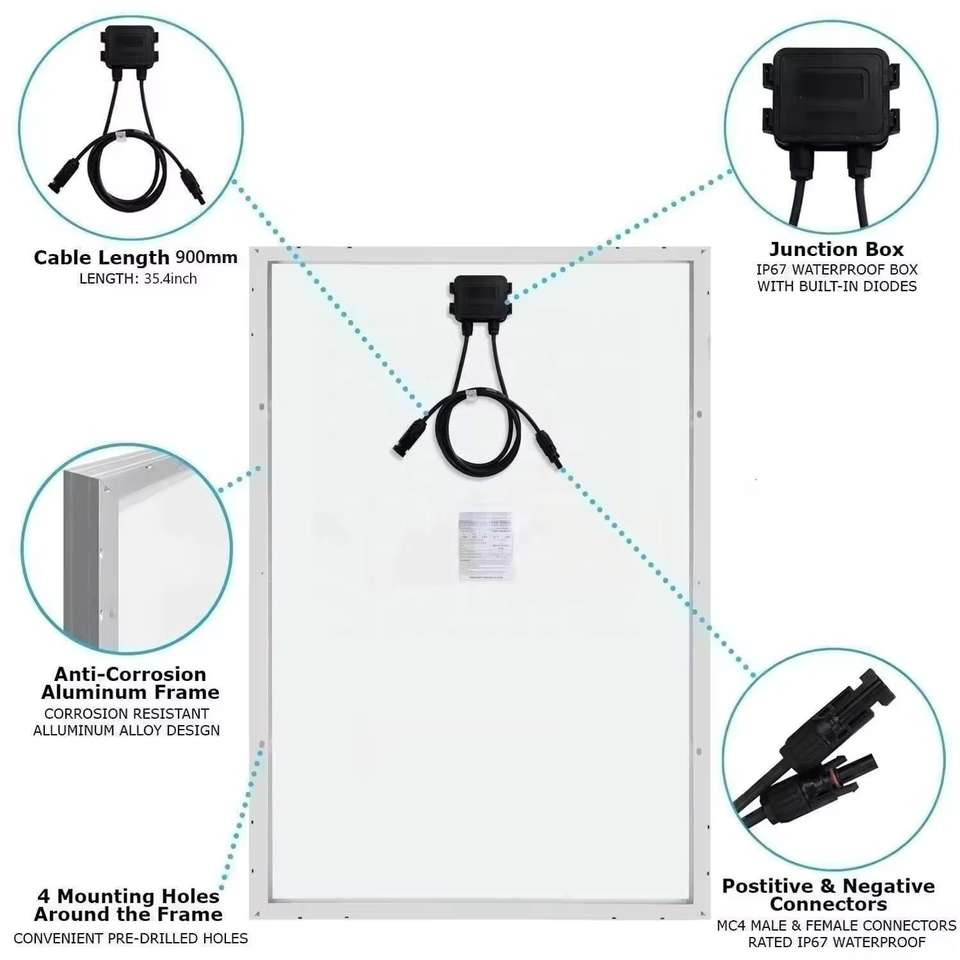 Pannello Solare di Piccole Dimensioni 100W 110W, Modulo Fotovoltaico Mono HJT ad Alta Efficienza 100W 19.8V Personalizzato per Camper e Sistemi Solari Off-Grid