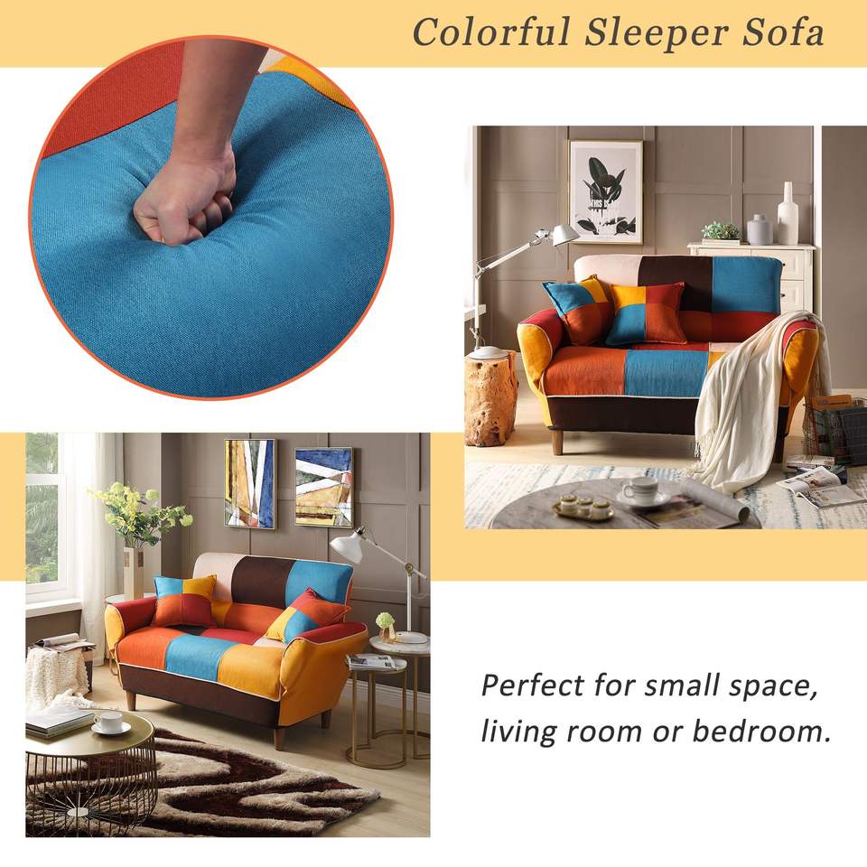 Divano Letto con Gambe in Legno Massello per Piccoli Spazi, Design Colorato - per Contenuti Video