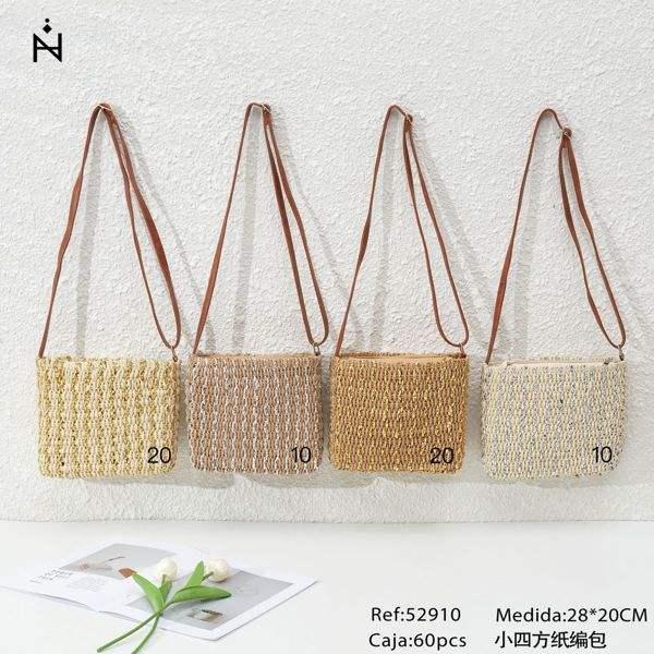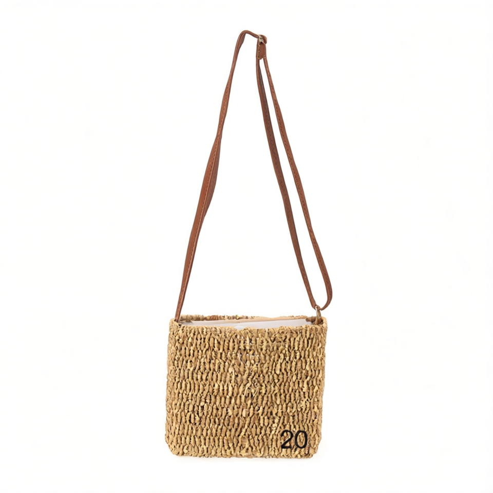 Borsa Quadrata in Carta Intrecciata 28x20cm, Borsa a Tracolla Estiva da Spiaggia
