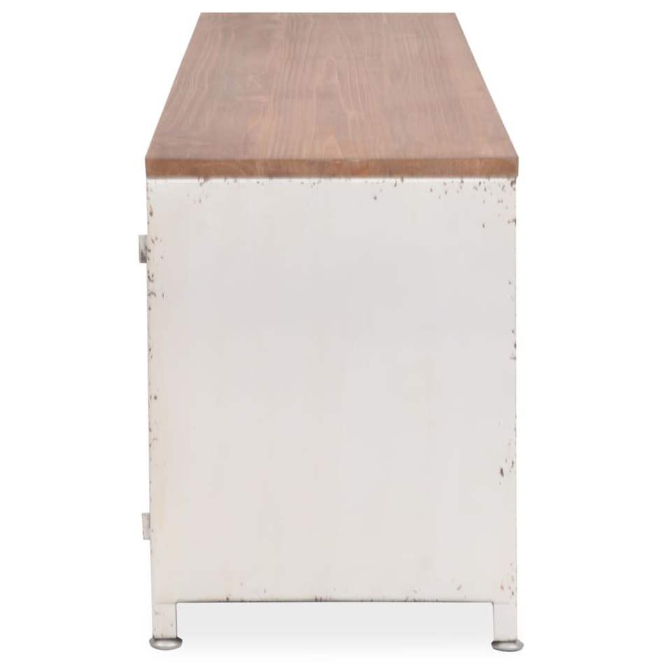 Small TV Stand in White and Brown Durable Galvanized Steel and Solid Fir Wood