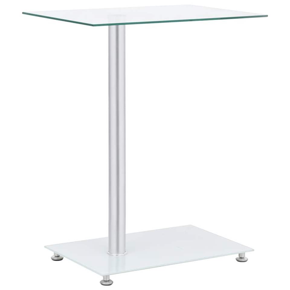 Tavolino Laterale in Vetro Temperato Trasparente e Acciaio Inossidabile, Prodotto per Tavoli Console