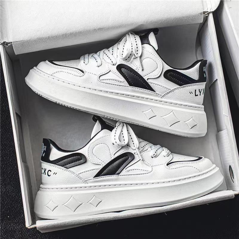 Piccole scarpe bianche estive da uomo in pelle traspirante con suola spessa versione coreana giovanile di tutti gli sport Casual