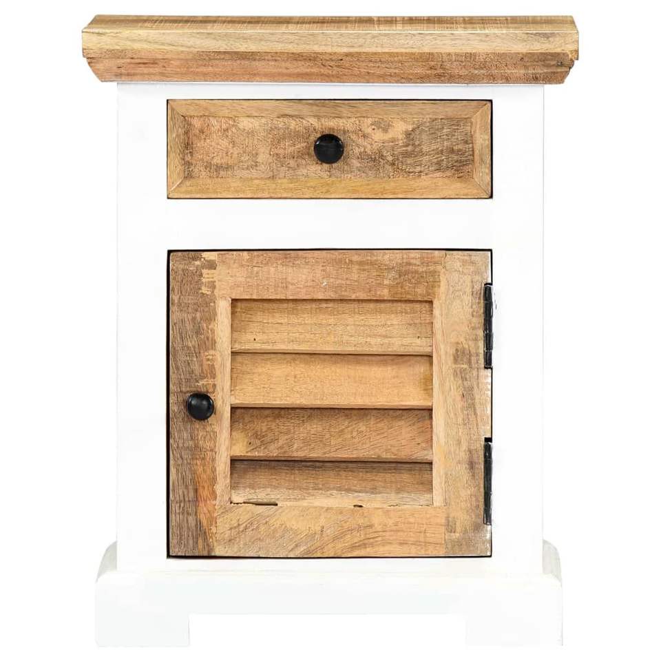Small White and Brown Solid Mango Wood Engineered Wood Nightstand