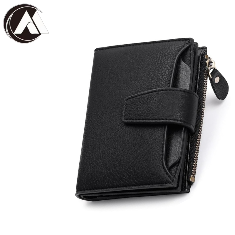 Piccolo da donna in pelle di vacchetta di grano RFID blocco Bifold con cerniera porta carte portafoglio con finestra di identità antifurto
