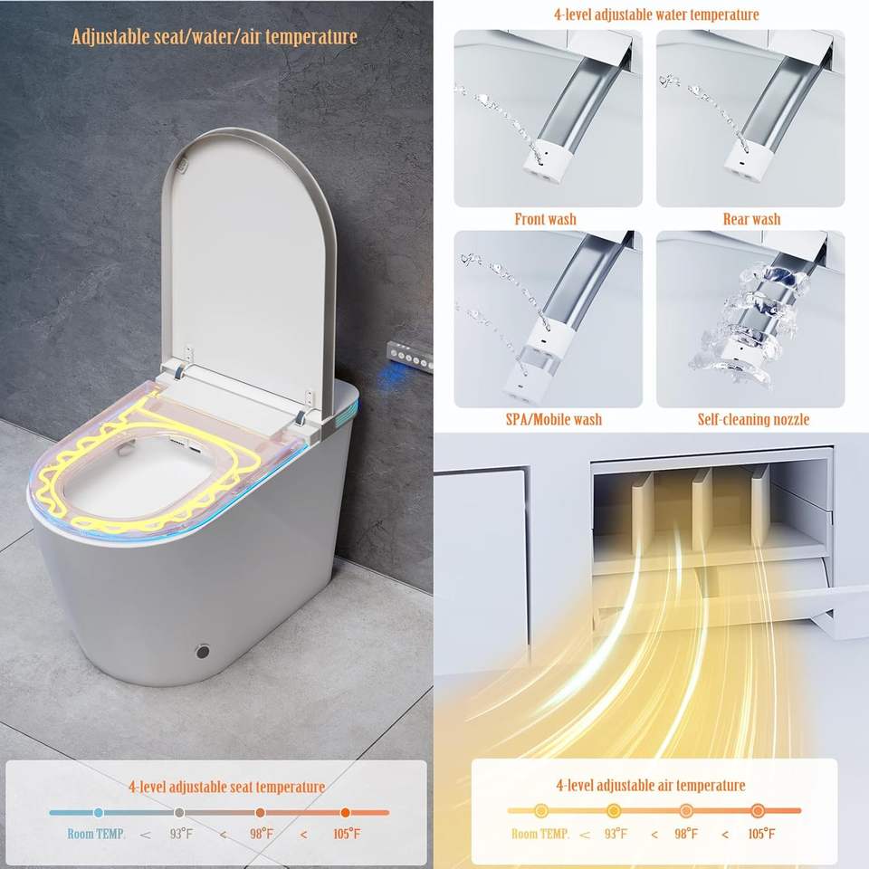 Ugello a pulizia automatica, Lavaggio femminile, Metta il riscaldamento a sedere, Pulizia dell'ugello mobile, Essiccamento caldo dell'aria, Tipo caldo istante, Telecomando, Lavaggio delle natiche, Registrazione di pressione di acqua, Registrazione di temperatura dell'acqua, Night Light