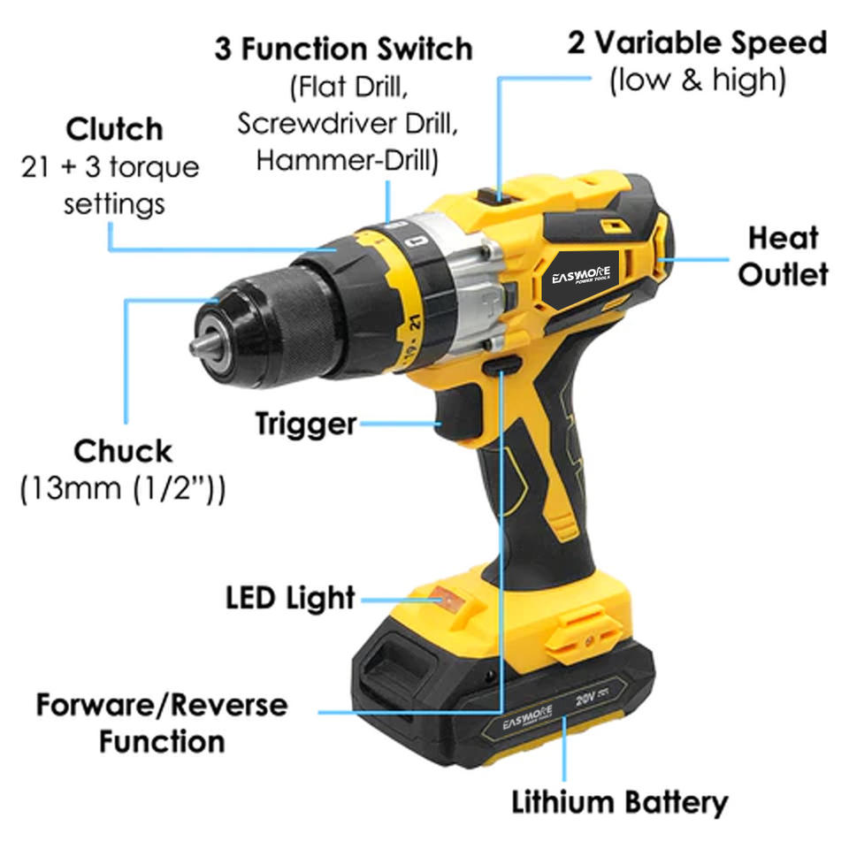 Smart 3 in 1 trapano 20v pistola per trapano a percussione elettrica al litio piccolo trapano a percussione a batteria con batteria