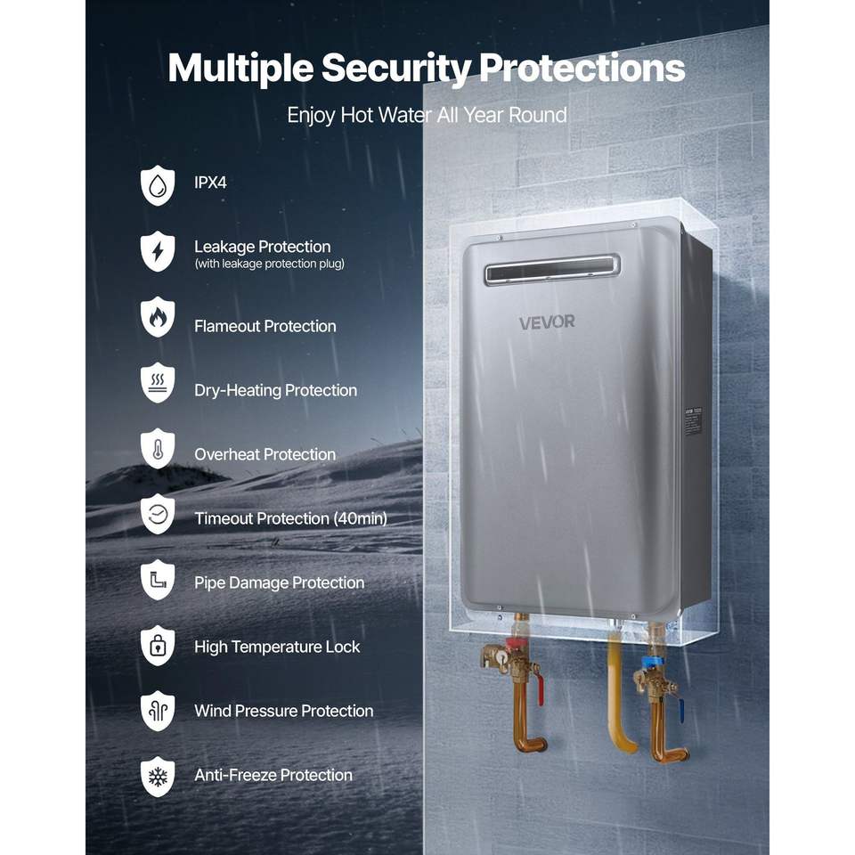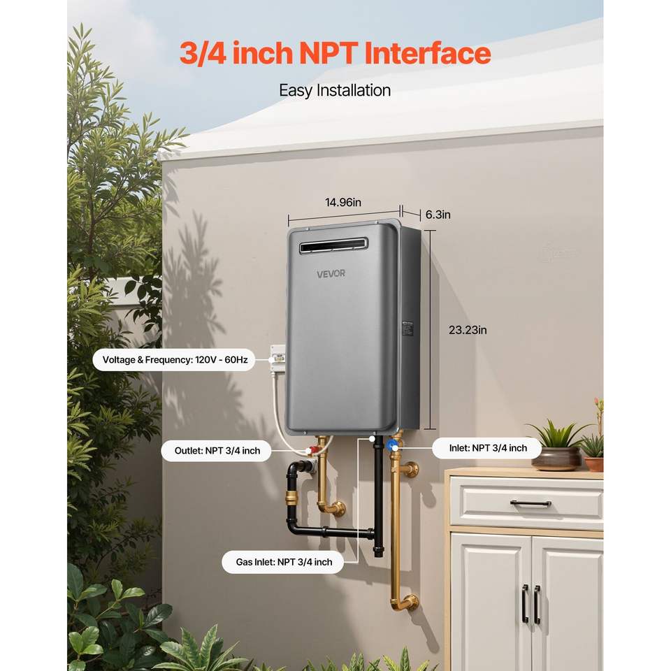 Scaldabagno Istantaneo Intelligente da 5,3 Galloni, 120000 BTU, a Gas per Esterni Senza Serbatoio, Connessione NPT da 3/4 Pollici con Controllo della Temperatura