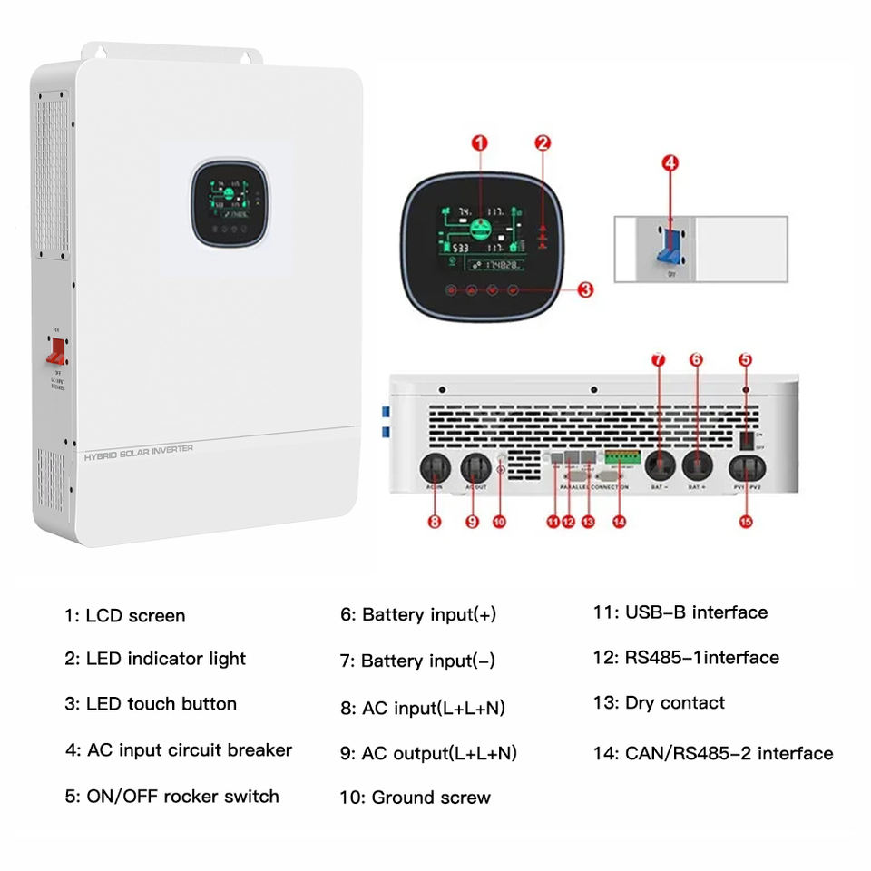 Smart 8kw ~ 10kva 24V 48V Build-in 100A MPPT Inverter a onda sinusoidale pura Off Grid tutti in uno Inverter ibridi di energia solare con WIFI