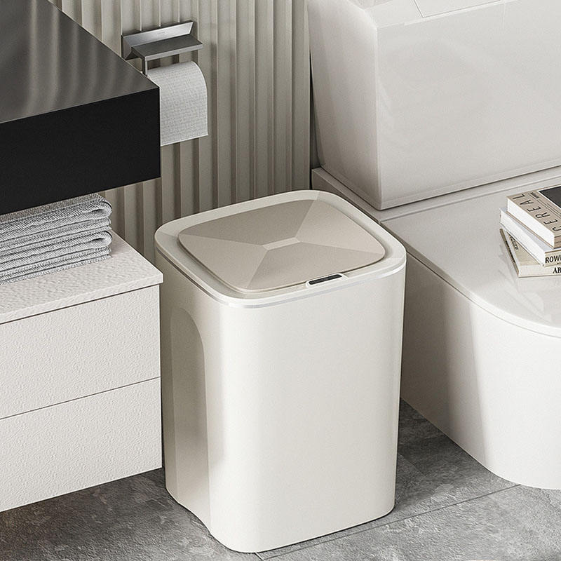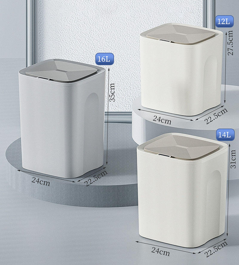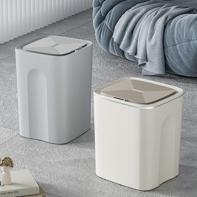 Bidone della spazzatura senza contatto automatico intelligente, sensore di movimento grigio nebbioso pattumiera in plastica impermeabile per camera da letto