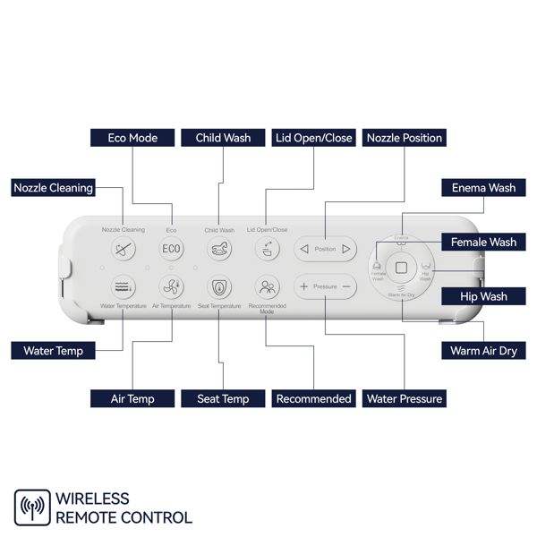 Smart Bidet Toilet Seat Adjustable Heated Seat Water Temperature Pressure Control Open Lid Automatic Nozzle Cleaning Sensor