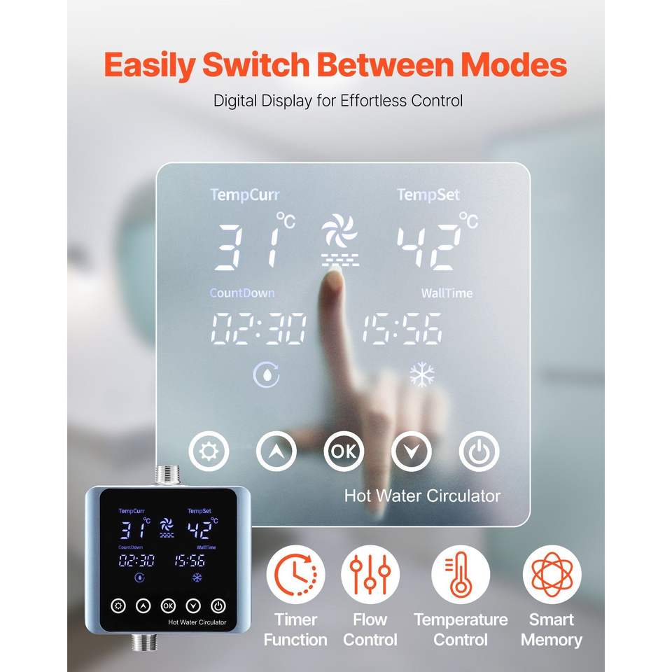 Kit Pompa Scaldabagno Elettrico Istantaneo Intelligente con Termostato, Timer e Schermo Digitale Integrato per Ricircolo Acqua Lavello