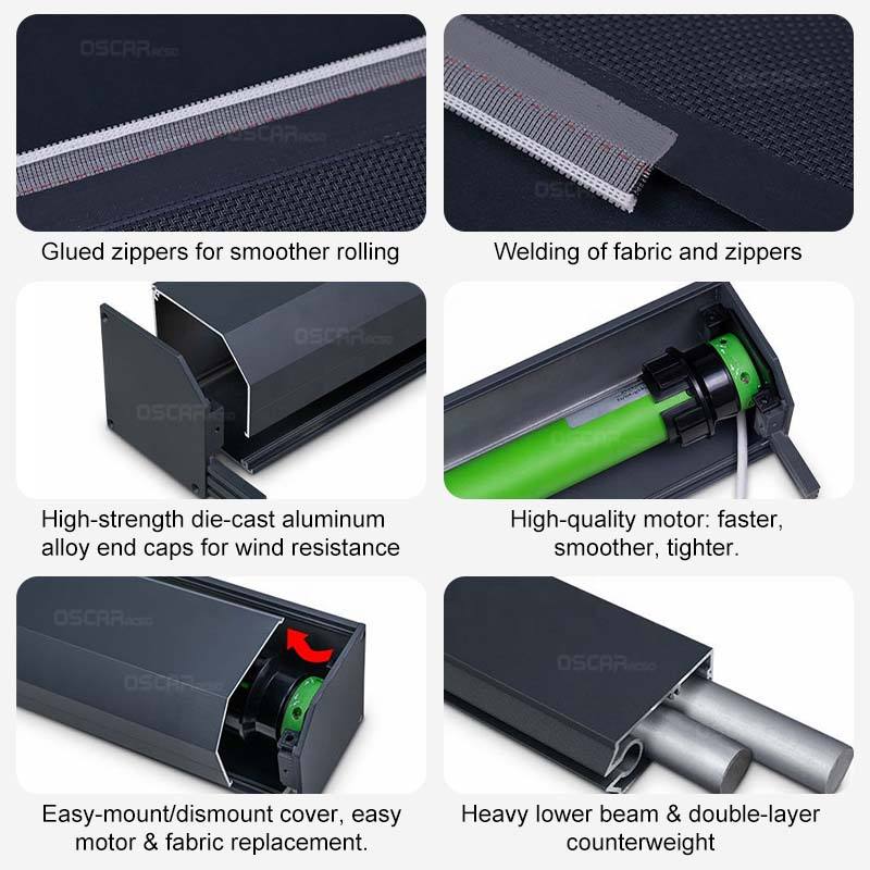 Protezione solare, A prova di fuoco, Durevole, Anti-UV, Impermeabile, Automatico, 100% blackout, Dual LayerCaratteristica