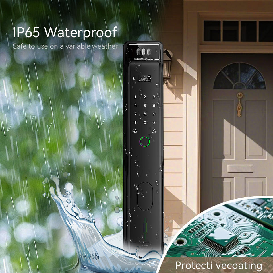 Serratura Intelligente per Appartamenti in Legno e Acciaio, Riconoscimento Facciale, Grande Capacità Utenti, Costruzione in Lega di Alluminio, Impermeabile IP65, Facile da Gestire