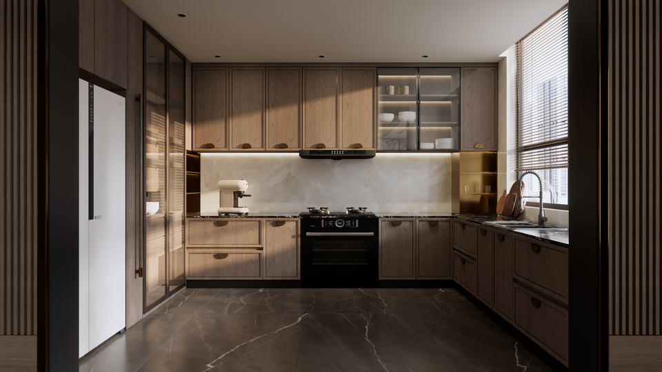 Mobile da Cucina Modulare Intelligente con Vetro, Contenitore Nascosto, Facile Installazione, Pannello Impermeabile, Dimensioni Personalizzabili per Sala da Pranzo e Cantina